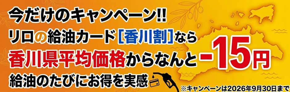 キャンペーン期間:2026年9月30日まで(香川県平均価格から15円/L引き)