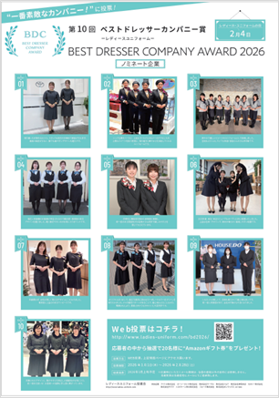 レディースユニフォーム協議会は、第10回「ベストドレッサーカンパニー賞」のWEB投票を2026年1月1日から2月28日まで受け付けます。特設ホームページで誰でも投票でき、投票はお一人様1回に限られます。
