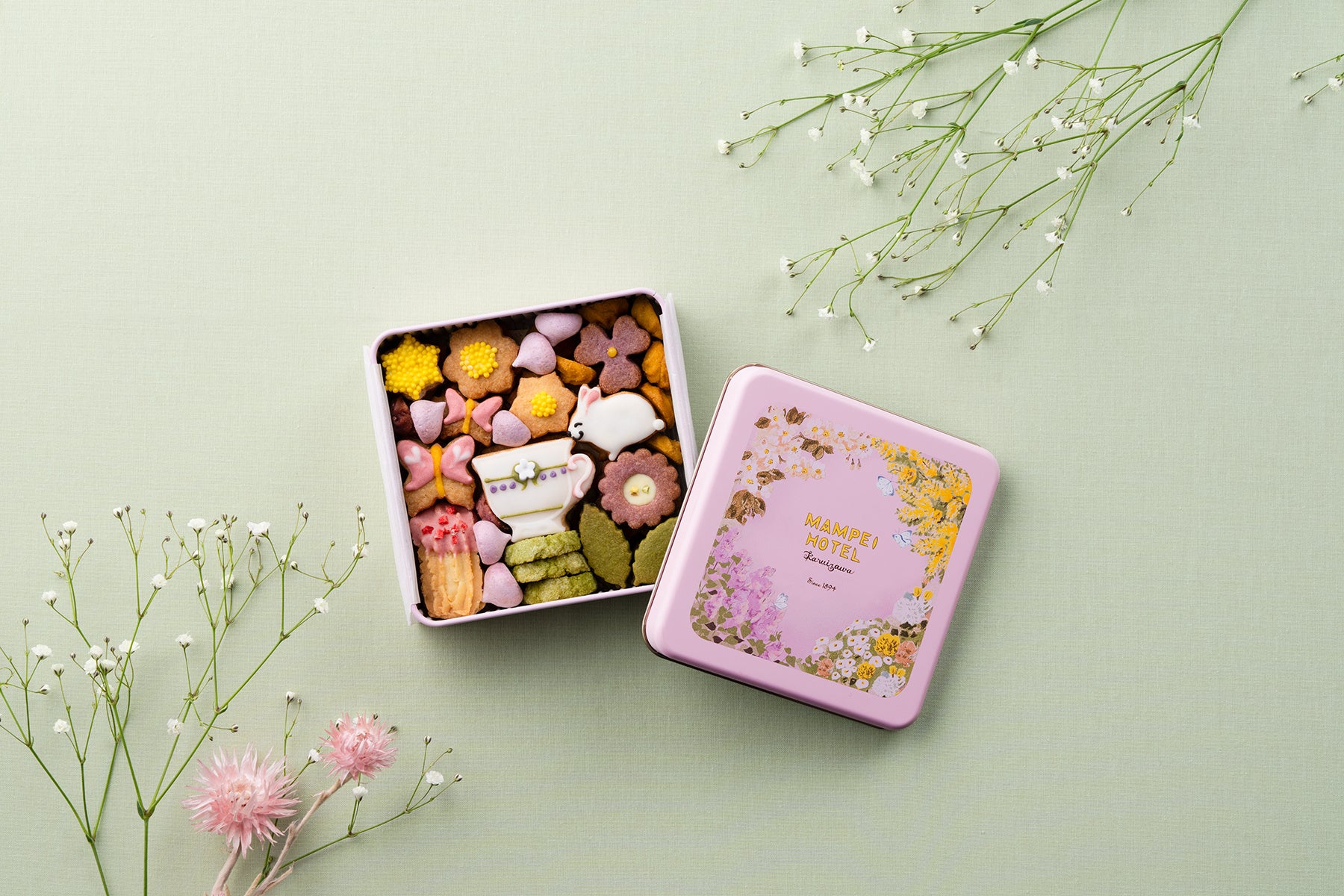 万平ホテル(長野県軽井沢町)は、クッキー缶第3弾「万平ホテルフラワークッキー缶・春」を2026年3月9日(月)に発売します。価格は5,800円(税込)で、11種類・155g入り、缶(箱)サイズは12cm×12cm×4cmです。店頭と公式オンラインショップで数量限定販売します。