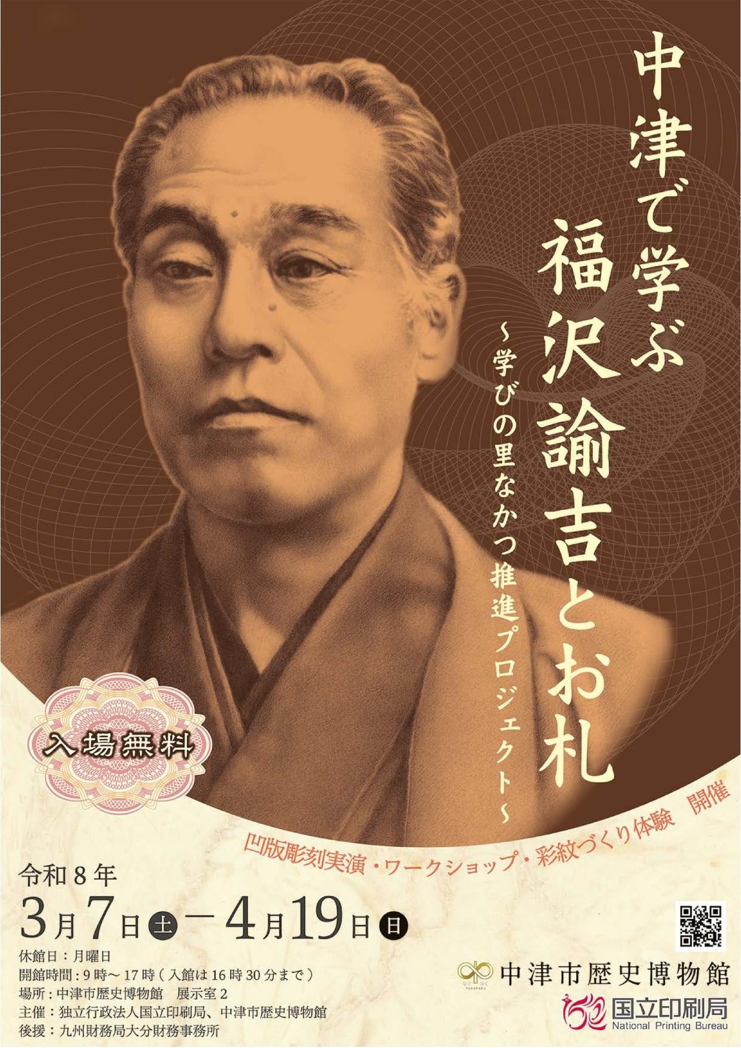 大分県中津市の中津市歴史博物館は、企画展「中津で学ぶ福沢諭吉とお札」を2026年3月7日から4月19日まで開きます。会場は展示室2で、開館は9時から17時、休館は毎週月曜日です。入場料は無料です。