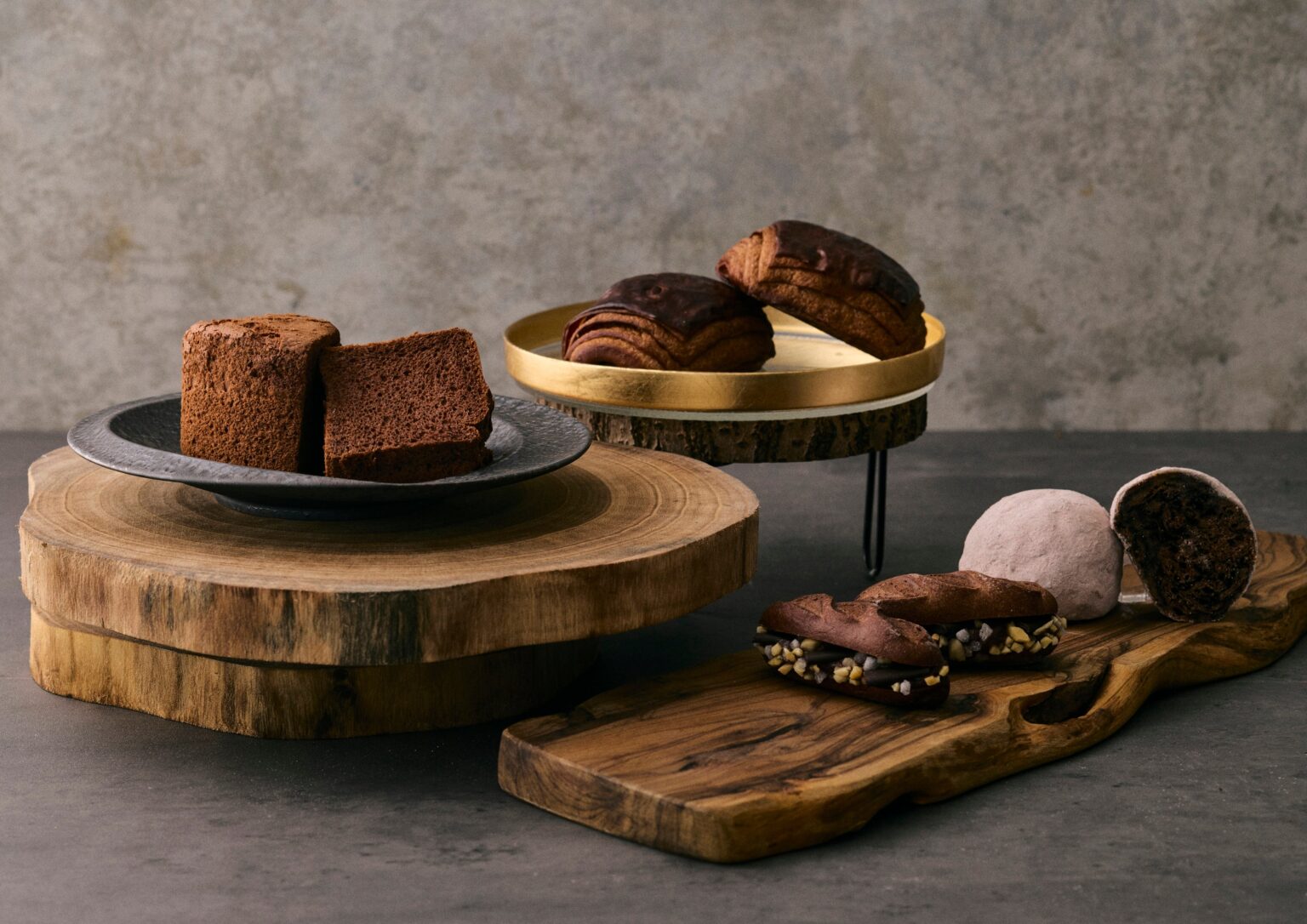 バレンタインコレクション(2/1〜):ダブルチョコのプティトゥ、米粉のチョコもちサンド、パン・オ・ショコラ、ショコラシフォンケーキ