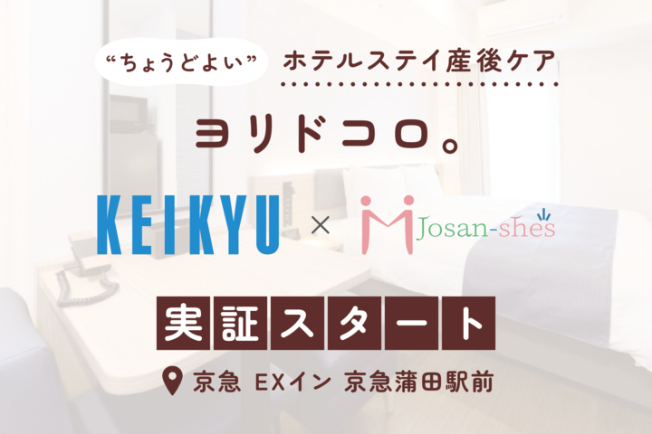株式会社Josan-she’sと京浜急行電鉄株式会社は、2026年1月27日(火)~29日(木)の2泊3日、京急 EXイン 京急蒲田駅前でホテルステイ産後ケア「ヨリドコロ。」の実証を行います。生後0~12か月の子どもを持つ母親・父親と子どもを対象に、1泊2日から利用できるプログラムとして提供し、産後の新たなケアの選択肢となるかを検証します。