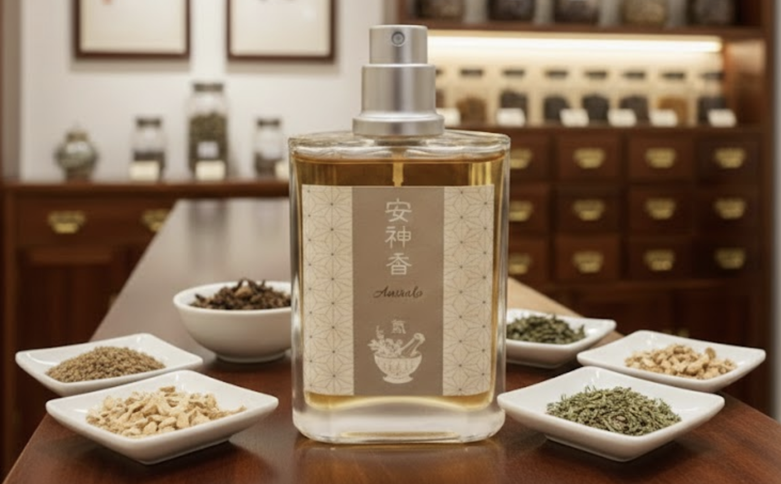 商品は、東洋医学の考え方で心身を落ち着かせることを指す「安神」をコンセプトに、西洋アロマと和漢の知恵を組み合わせた香りを目指した。現代人が仕事や日常から「オフの時間」へ切り替えにくい状況を背景に、安らぎの時間を提案する狙いだ。