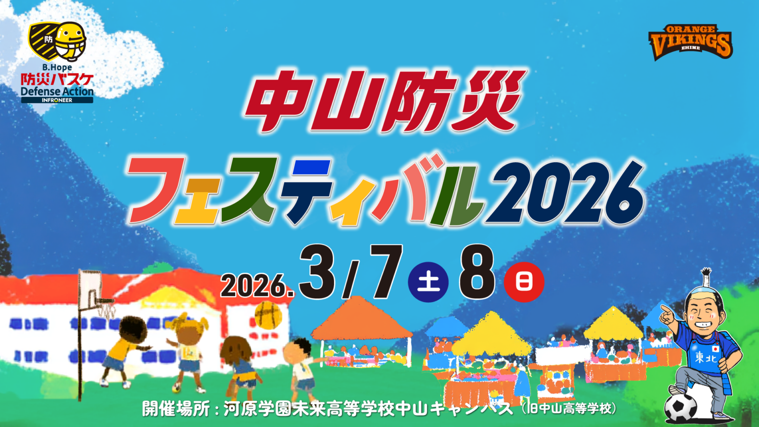 【愛媛県伊予市×愛媛オレンジバイキングス】「学校」×「Bリーグ練習拠点」×「防災」で挑む新たなモデル。「中山防災フェスティバル2026」3月7日・8日開催