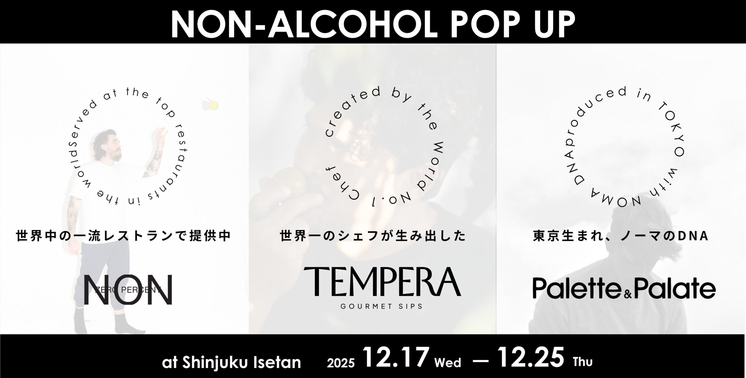伊勢丹新宿店本館地下1階シェフズセレクションプロモーションコーナーで、2025年12月17日~25日に同コーナーとして初となるノンアルコール飲料専門ポップアップが開かれます。営業時間は10時~20時で、世界的レストラン関係者が関わる3ブランドの「ワインオルタナティブ(ワイン代替飲料)」を期間限定で展開します。