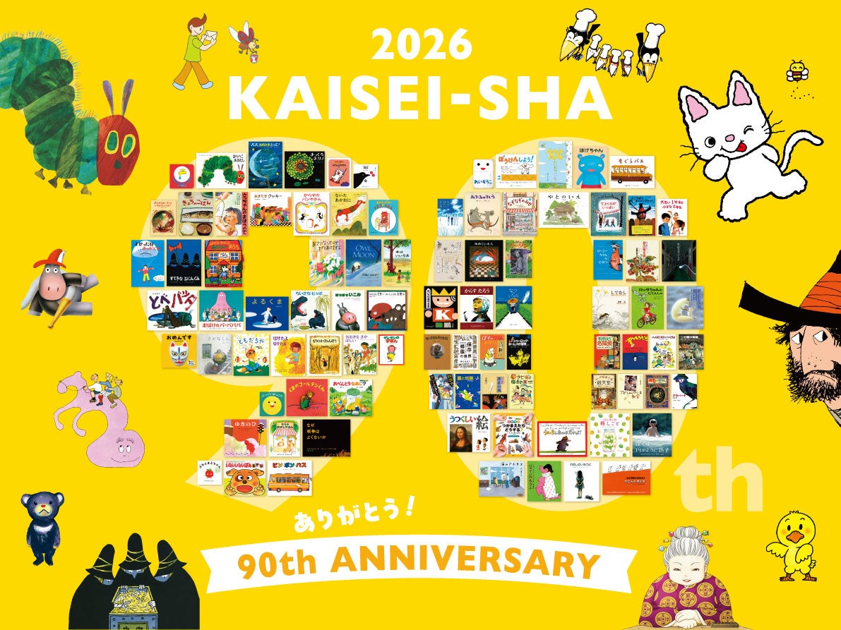 児童書出版社の偕成社(東京都新宿区)は、2026年11月3日に創業90周年を迎えます。記念企画として、復刊は第1弾で五味太郎作品3冊を2025年12月に同時復刊し、第2弾は2026年4月下旬に2点を予定します。全国1300以上の書店でフェアを展開し、神戸ファッション美術館では2026年6月20日〜8月30日に記念展を開きます。