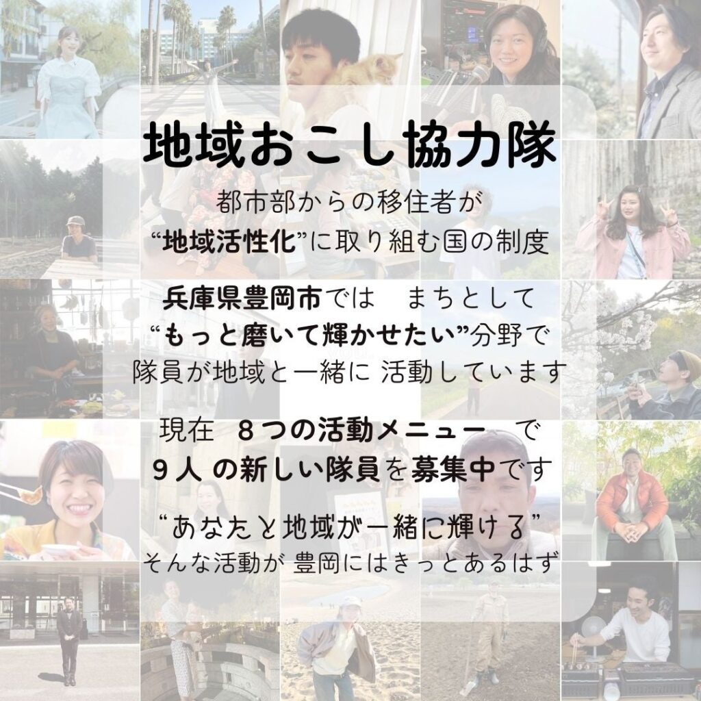 兵庫県豊岡市は、2026年1月4日までに地域おこし協力隊を9人募集します。起業型を含む8つのメニューで、活動時間は月140時間(例:1日7時間×20日)とし、報酬は月額上限29万1,000円です。業務委託契約での募集で、最大3年間(起業型は最長2年)活動します。