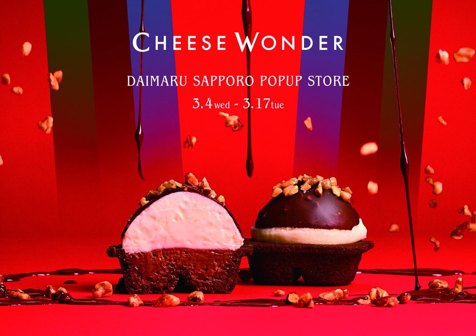 北海道コンフェクトグループのスイーツブランド「CHEESE WONDER(チーズワンダー)」は、2026年3月4日から3月17日まで、大丸札幌店地下1階催事場でPOP UP STOREを開きます。営業時間は10時~20時で、冬限定の新フレーバー「CHEESE WONDER GIANT BLACK」(4個入り2,970円・税込)などを販売します。