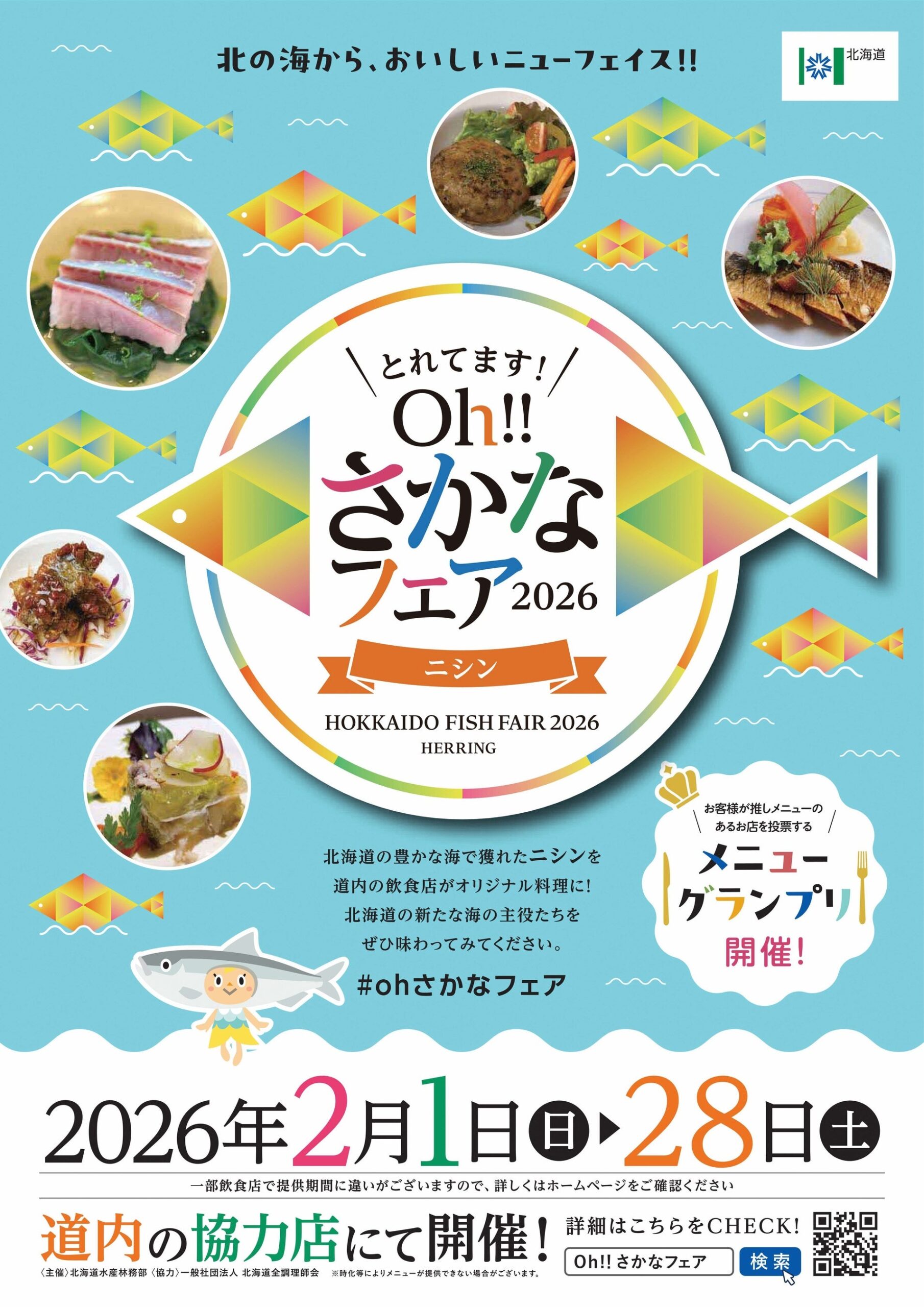 北海道全域で、道産ニシンを使った料理を提供する「とれてます!Oh!!さかなフェア」第2弾「ニシンフェア」が2026年2月1日〜28日に開かれます。参加する飲食店などでニシンメニューを展開し、特設サイトでオリジナルレシピ動画も公開します。
