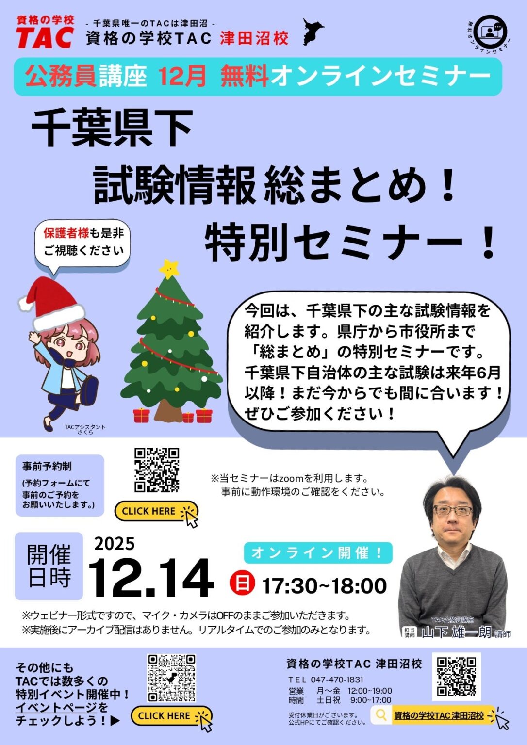 申込:事前予約制・参加無料 https://www.tac-school.co.jp/kouza_sogo_komuin/online_form/special_events.html#tsudanuma