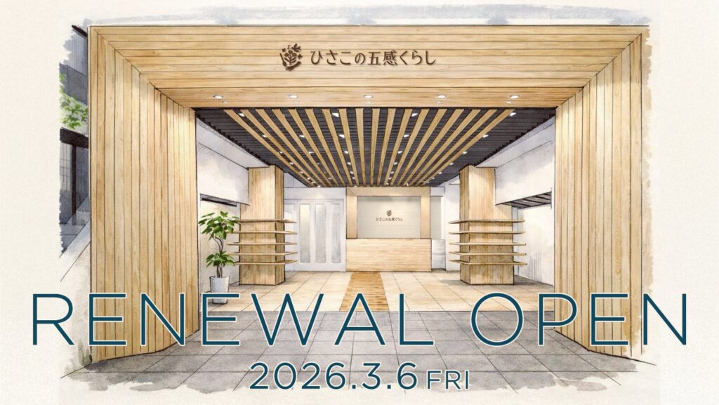 株式会社ピーエーエス(大阪府茨木市)は2026年3月6日、東京・南青山のショールーム「P!NTO SEATING DESIGN 南青山店」を「ひさこの五感くらし」としてリニューアルオープンします。営業時間は11:00〜19:00、定休日は水曜です。オープン記念イベント&セールは3月6日〜10日に行います。