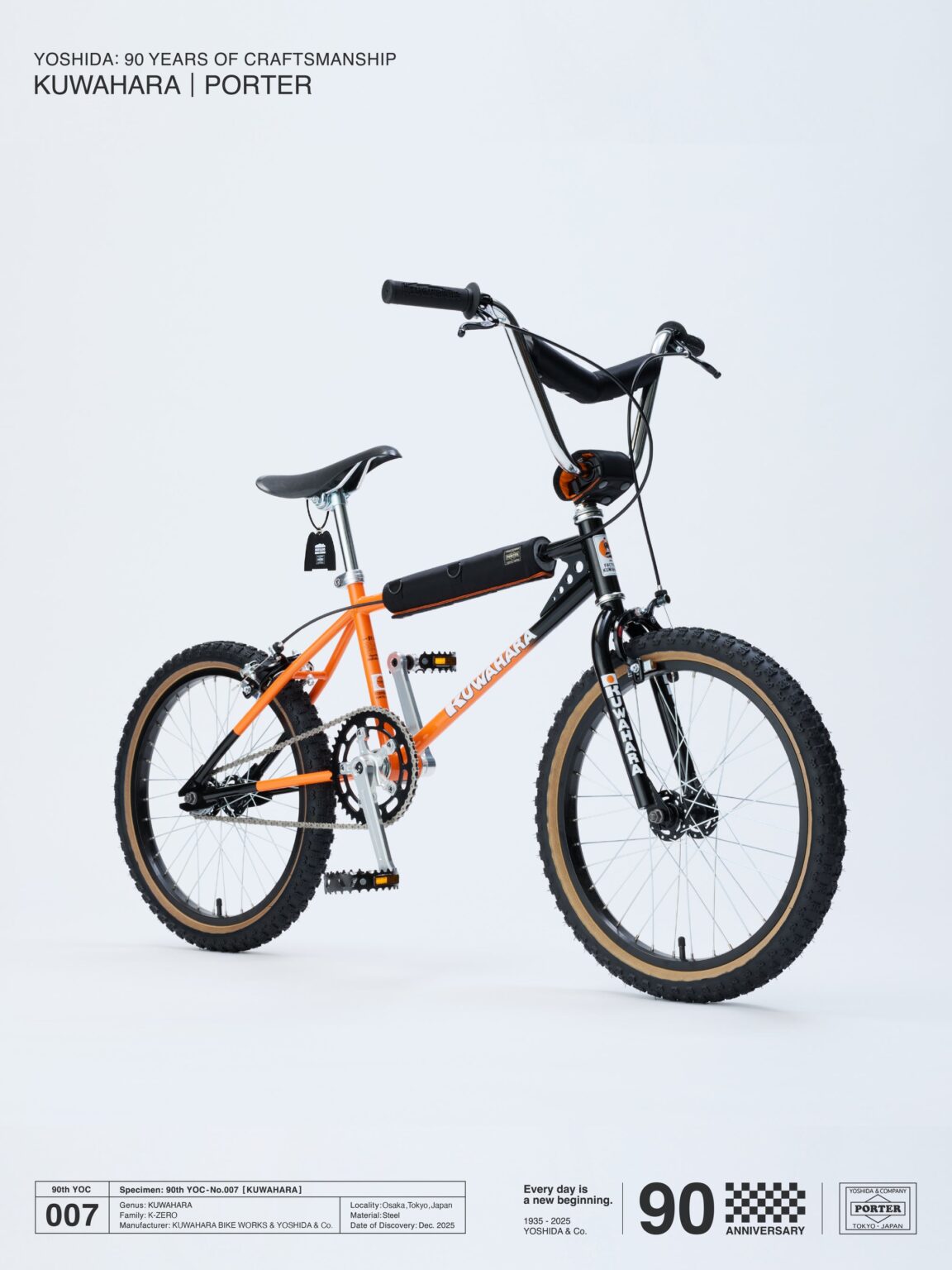 吉田カバンの90周年企画として、KUWAHARA BIKE WORKSのBMX「K-ZERO」をPORTER仕様に仕立てた限定モデルの受注販売が12月6日に始まります。価格は税込18万7,000円。販売はPORTER OMOTESANDOで完全数量限定で行い、受注イベントは12月6〜14日、営業時間は12:00〜20:00です。
