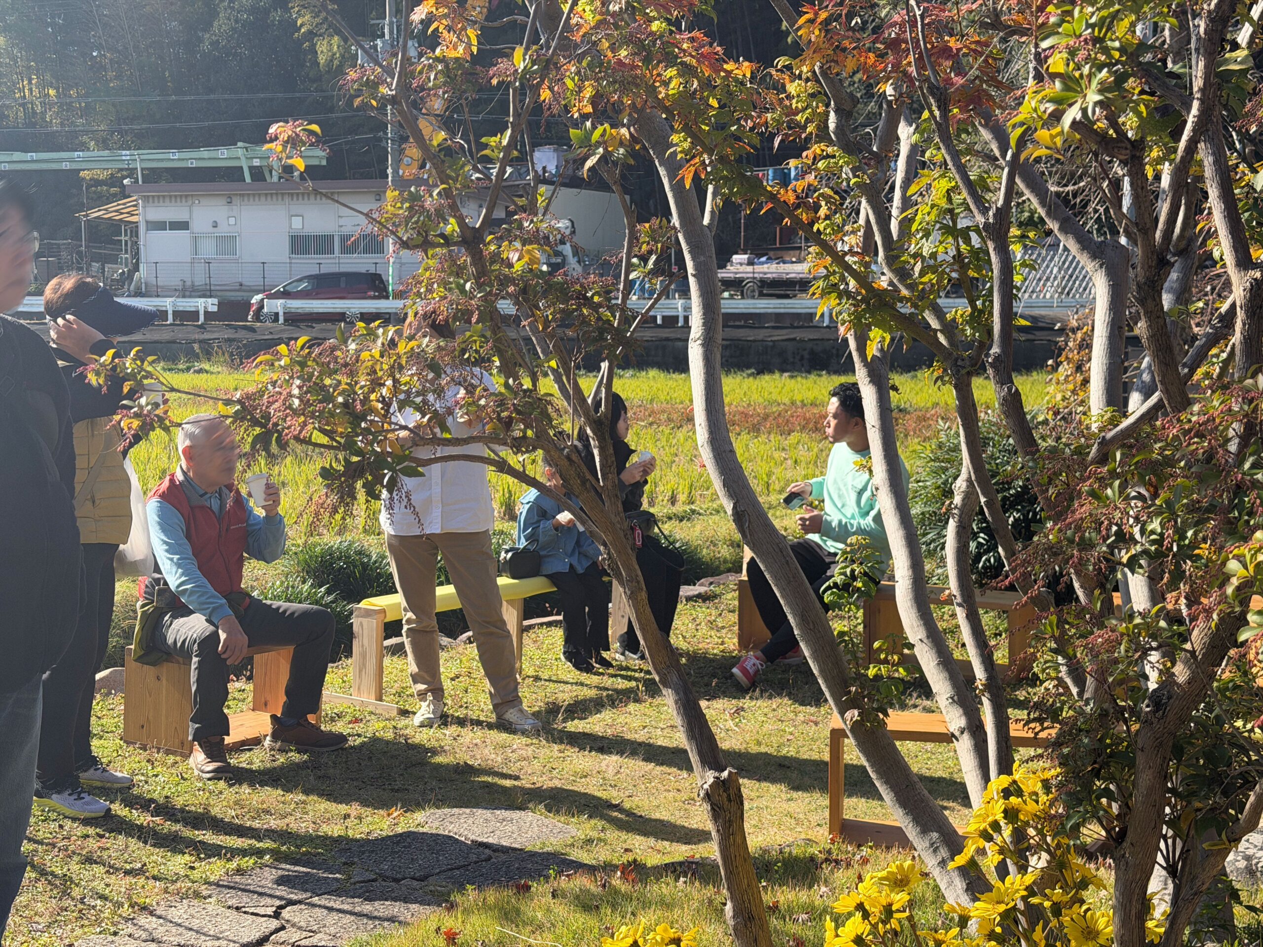 イベントは、住宅会社の株式会社コアー建築工房が、同社で家を建てたホームオーナーと周辺地域の住民をつなぐ目的で企画したものです。「ナチュラルで健康的な暮らし」をテーマに、地元産の上神谷米を使ったおむすびやグルテンフリー菓子、オリジナルブレンドのハーブティーなど、体にやさしい食品が並びました。暮らしの道具のエリアでは器や木工作品を販売し、木工体験やしめ縄・リースづくりのワークショップには親子連れが参加しました。