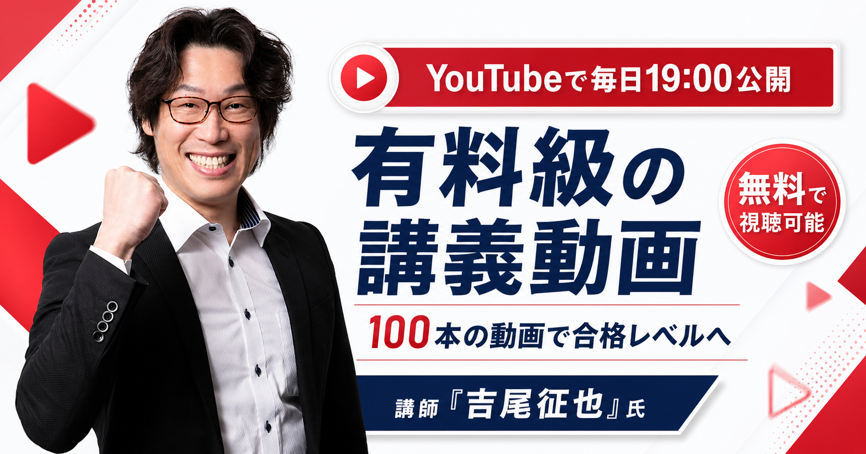 【宅建試験】吉尾征也氏による有料級の講義動画100本以上、YouTubeで毎日無料公開!さらに3,500問以上の問題が【完全無料】の宅建WEBアプリ「宅スマ」も紹介!!