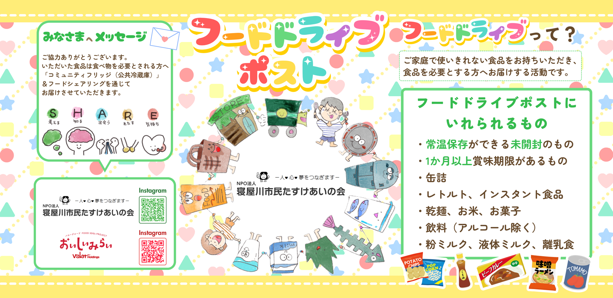 大阪府寝屋川市で食品ロス削減と食料支援に取り組む「寝屋川市民たすけあいの会」は、スーパーバロー2店舗に家庭の余剰食品を回収する「フードドライブポスト」を2026年1月28日から常設します。回収した食品は、寝屋川コミュニティフリッジを通じて100世帯以上の支援につなげます。