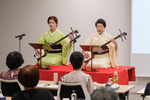 講座では、日本酒造りが春の苗づくりから秋の収穫、冬の仕込みへと続く稲作のサイクルに支えられてきたことを、今田周三館長が歴史や暮らしの背景とともに解説しました。小唄に織り込まれた酒席の情景や豊作祈願の祭りなど、日本人の季節感と酒文化の関係を具体的な場面で紹介し、来場者は三味線の柔らかな音色とともに日本酒文化の成り立ちを学びました。