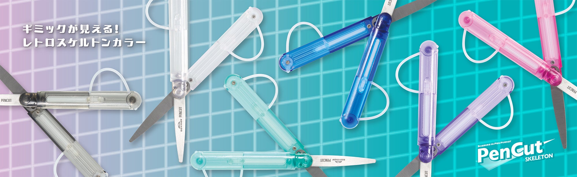 透けて見えるギミックが楽しい!左右両利き対応のペン型ハサミにレトロなスケルトンカラーが新登場。「PENCUT(ペンカット)スケルトン」、4月下旬発売