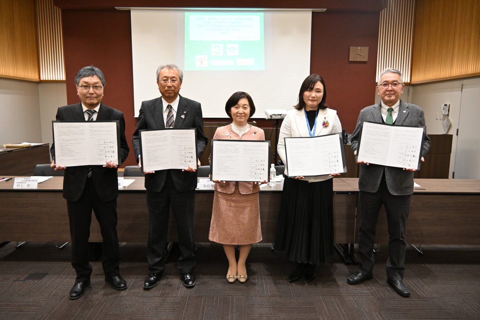 2026年2月25日、酒田市と遊佐町、JA庄内みどり、生活クラブ庄内生活協同組合、生活クラブ事業連合生活協同組合連合会の5者は、遊佐町役場で「包括連携に関する覚書」と「大規模災害時に対する相互協力に関する覚書」を結びました。庄内地域の持続可能な発展と、庄内全域での協力体制づくりを進めます。