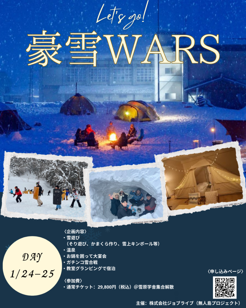 新潟県十日町市の廃校リノベーション施設「雪原学舎」で、戦略型スポーツ雪合戦イベント「豪雪WARS 2026」が2026年1月24〜25日に開かれます。定員は50人、参加費は1泊2日で2万9800円(夕食・朝食付き)で、申込締切は1月7日です。主催は株式会社ジョブライブで、10〜30代を主な対象に18歳以上(高校生不可)で受け付けます。内容はチーム対抗のスポーツ雪合戦を中心に、ソリ遊び、かまくらづくり、雪上キンボールなどを実施します。スポーツ雪合戦は作戦立案や武器選択、陣地設計、フラッグ争奪、バトルロワイヤル形式など戦略要素が特徴で、初参加や1人参加でも交流しやすい設計だといいます。会場の雪原学舎は十日町駅からバスで約20分の豪雪地帯にあり、教室を改装した「教室グランピング(学泊)」で宿泊します。今後は冬季の地域滞在型アクティビティとして、廃校活用と観光需要の結び付きがどこまで広がるかが注目されます。