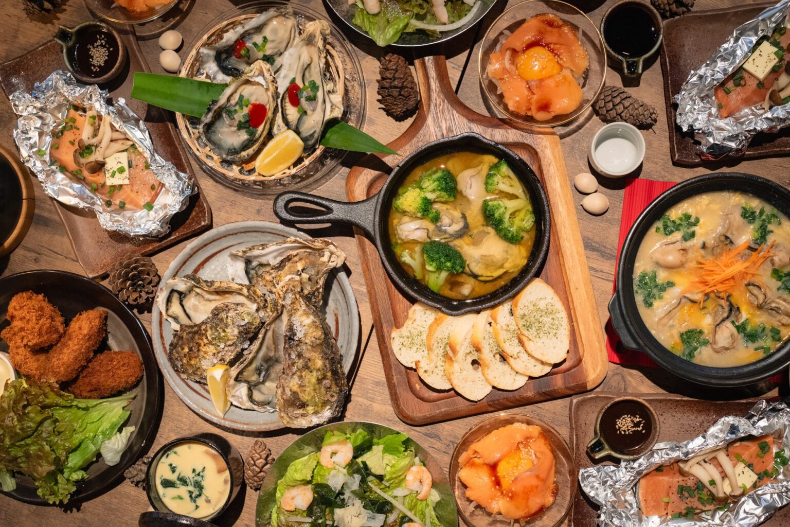 愛知県一宮市のグランピング施設「ウッドデザインパークいちのみや 紡(つむぎ)」の冬季限定「牡蠣小屋」で、新プラン「牡蠣三昧コース」の提供が始まりました。生牡蠣・焼き牡蠣・カキフライを含む全8品にソフトドリンク飲み放題を付け、小学生以上は1人4,800円、未就学児は飲み放題のみで500円です。コースは海藻サラダ、海鮮ユッケ、牡蠣のアヒージョ、三種の牡蠣料理、サバの味噌ホイル焼き、〆の牡蠣雑炊で構成し、牡蠣料理を一通りコース形式で楽しめます。オーダー可能時間は90分、席の利用は最大120分です。会場は全面ビニールシート付きの「牡蠣小屋席」で、ジェットヒーターを強化したとしており、寒い時期でも飲食しやすい環境を整えたといいます。夜はストリングライトや焚き火で雰囲気を演出し、冬の集客強化につなげる構えで、今後は既存の「牡蠣食べ放題コース」との使い分けが進みそうです。