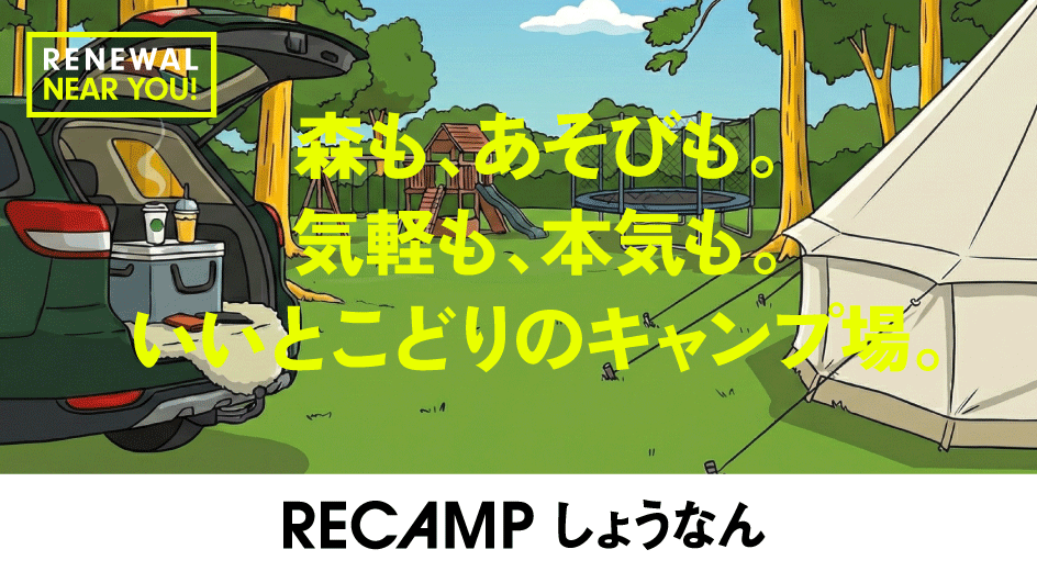 千葉県柏市の手賀の丘公園内キャンプ場「RECAMP しょうなん」が、2026年4月3日に大規模リニューアルして再開します。予約は2月5日から、キャンプ場検索・予約サイト「なっぷ」で受け付けます。運営はR.projectの子会社、Recamp(2019年4月設立)が担います。