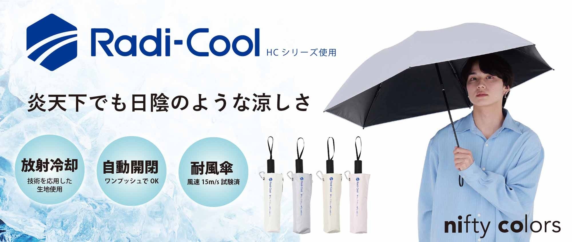 ニフティカラーズ(東京都墨田区)は、放射冷却技術を応用した生地「Radi-Cool(ラディクール)」を採用した耐風・自動開閉の遮光傘「ラディクール遮光オートマティックミニ58」を、応援購入サービスMakuakeで2026年1月14日から先行販売します。公開は2月6日までで、2本セット最大2,200円OFFなどの割引を用意します。