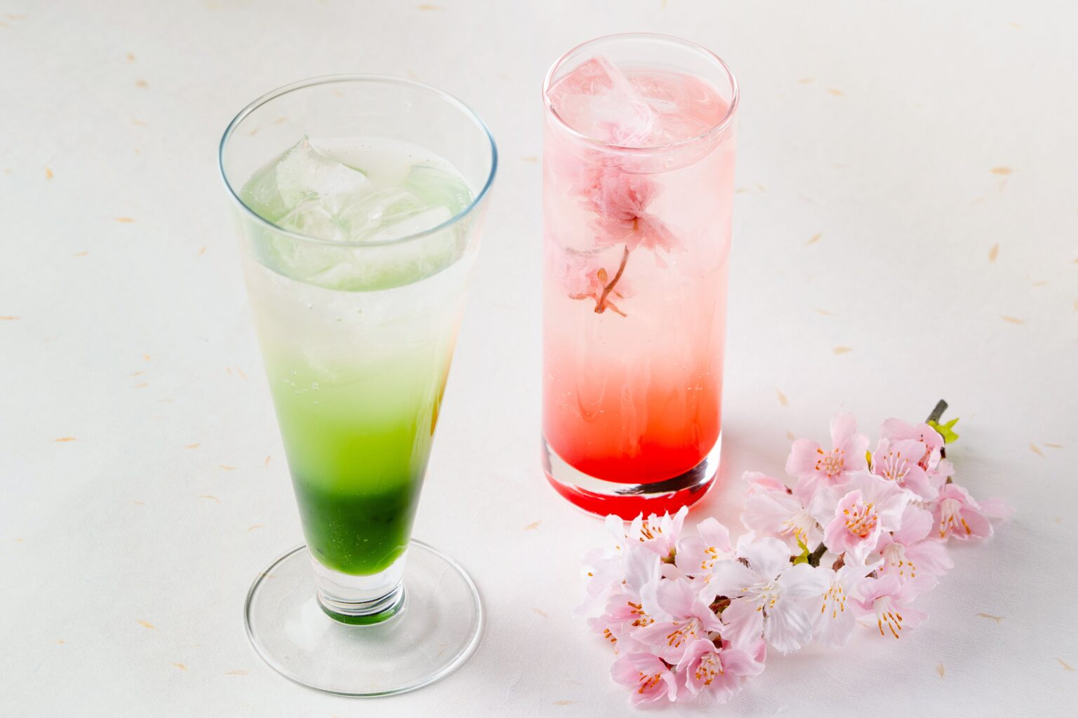 カクテルは2種類から選べ、「桜花~おうか~」は桜のリキュールと桜の塩漬けを使用します。「萌芽~ほうが~」はキウイシロップとゆず酒を組み合わせ、春の彩りをイメージした味わいにしています。