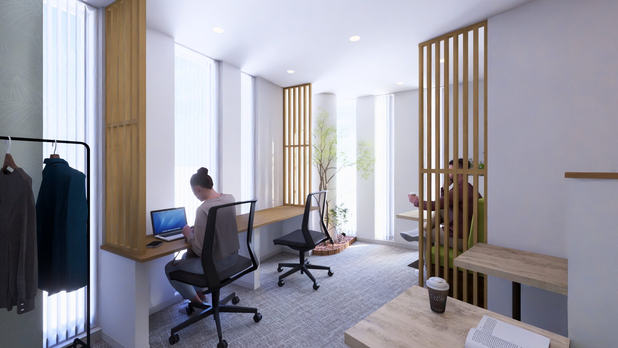 レンタルオフィスはインターネット、水光熱費込みの定額制で、敷金・礼金不要(別途契約金のみ)とし、登記にも対応。士業や不動産業など、各種許認可取得の実績を持つ事務所機能を提供します。新秋津駅と所沢駅を結ぶ「直通運転構想」で変化が見込まれる地域においては、近隣商店街の店主の思いやおすすめメニューを紹介するマップやチラシを設置し、利用者と地域店舗の新たな接点づくりを図る方針です。