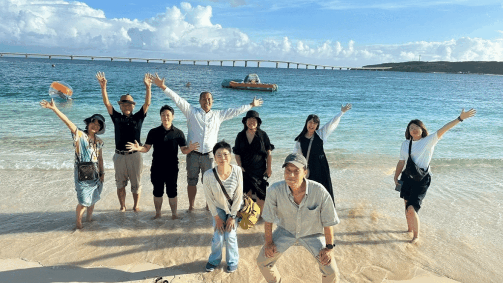 2回目の「共感ライティング講座×リトリートツアー」では、共感ライティングの専門家・峯山政宏氏を招き、約2時間半の講座を開催しました。漲水御嶽や宮古神社の参拝、ビーチでのバーベキューやサウナ、再度のモリンガ農園見学といったプログラムを組み合わせることで、島の自然を体感しながら「内なる声を言葉にする」方法を学ぶ構成としました。参加者は「現地での体験が文章に具体性を与える」「自分の価値観を言語化しやすくなった」などと語っています。