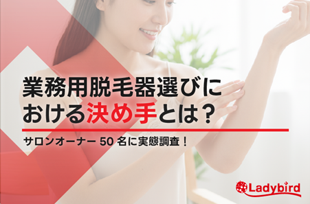 レディーバードは2026年2月18日、全国の脱毛サロン経営者・スタッフ50名を対象に、業務用脱毛器の選定基準と導入決断の情報源に関するインターネット調査結果を公表しました。最も重視したポイントは「脱毛効果・性能」が46.0%で最多でした。導入の決め手となった情報源は「実際のデモ・体験」が58.0%でした。