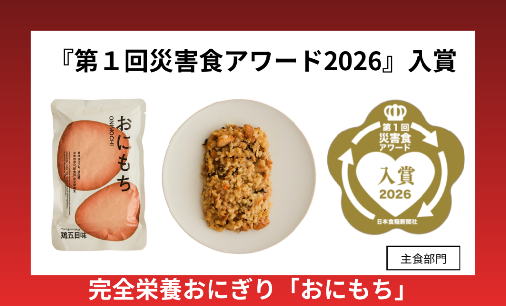 株式会社vitom(東京都品川区)の完全栄養ごはん「おにもち」が、日本食糧新聞社主催「第1回災害食アワード2026」主食部門で入賞しました。外出先での被災を想定し、水も火も使わず袋を開けてそのまま食べられる点を特徴としています。