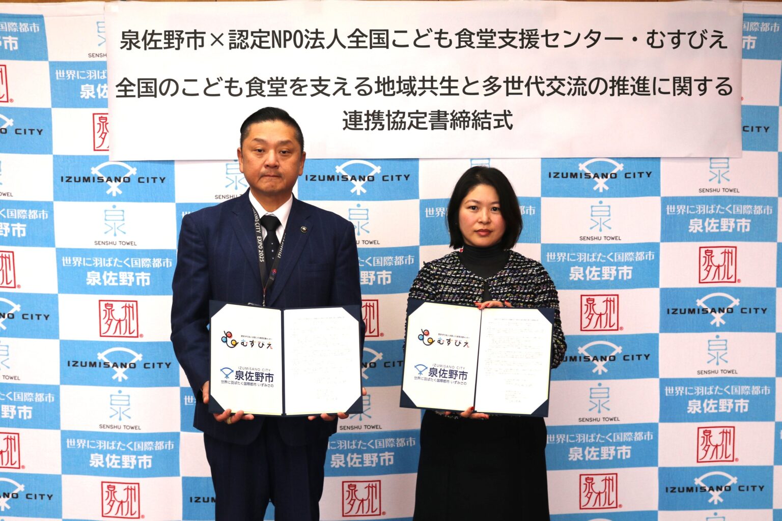 大阪府泉佐野市は2026年1月21日、認定NPO法人「全国こども食堂支援センター・むすびえ」(東京都渋谷区)と、こども食堂支援を軸に地域共生と多世代交流を進める連携協定を結びました。全国のこども食堂は12,601か所(2025年度速報値)とされ、支援の枠組みづくりが焦点になります。