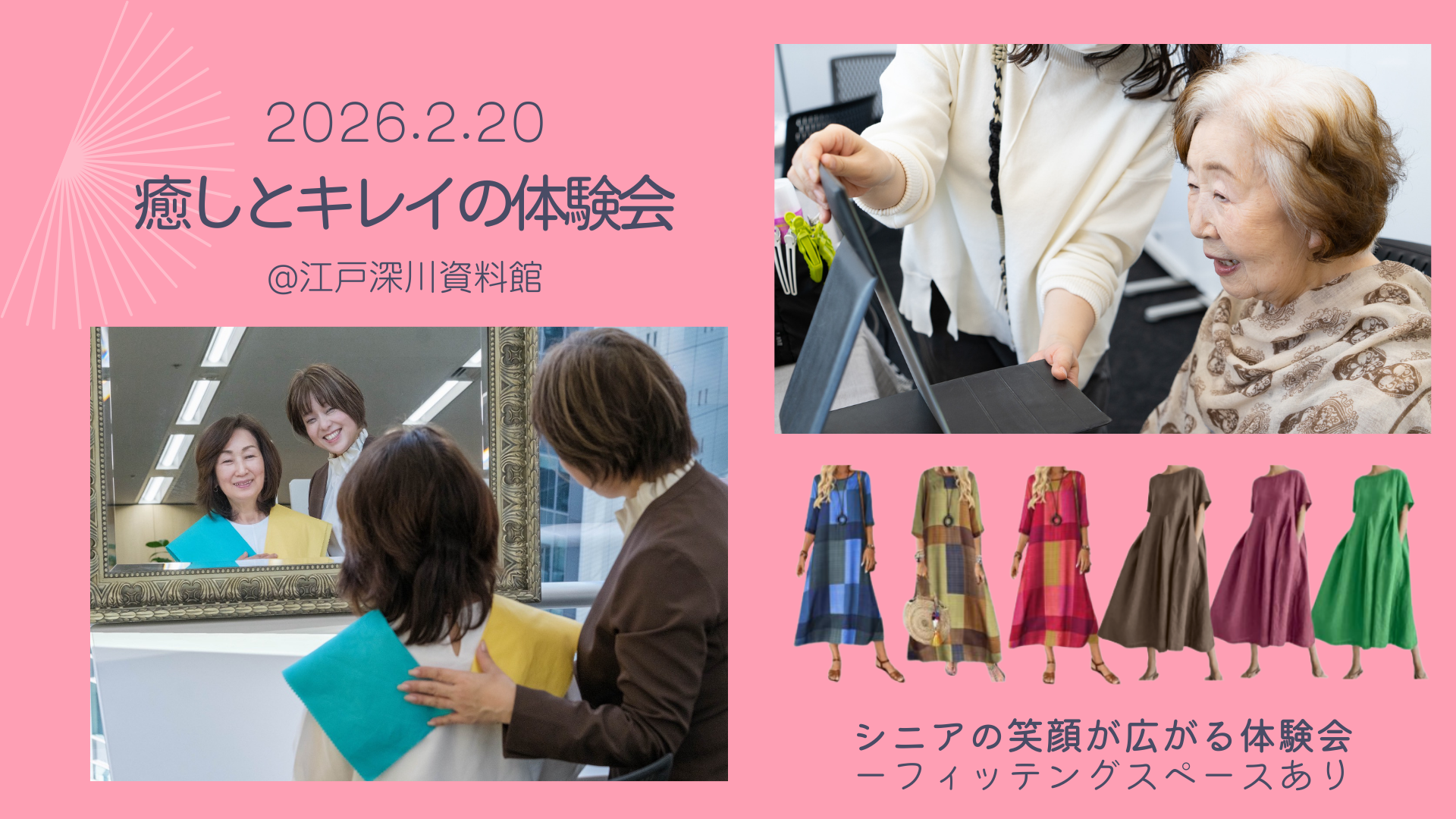 企画したプロデューサーの鈴木忍さんは、介護や体調の変化でメイクをやめた母の姿をきっかけに、年齢を重ねても「ときめく時間」を持てる場を目指したとしています。第1回は約60名が来場し、メイクや撮影の満足度が服の色に左右される傾向が見えたため、第2回でカラー診断を追加しました。