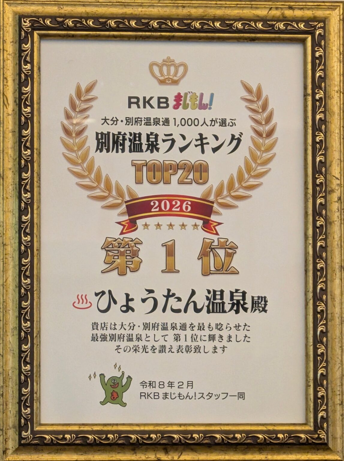 別府温泉通1,000人が選んだ第1位獲得‼️