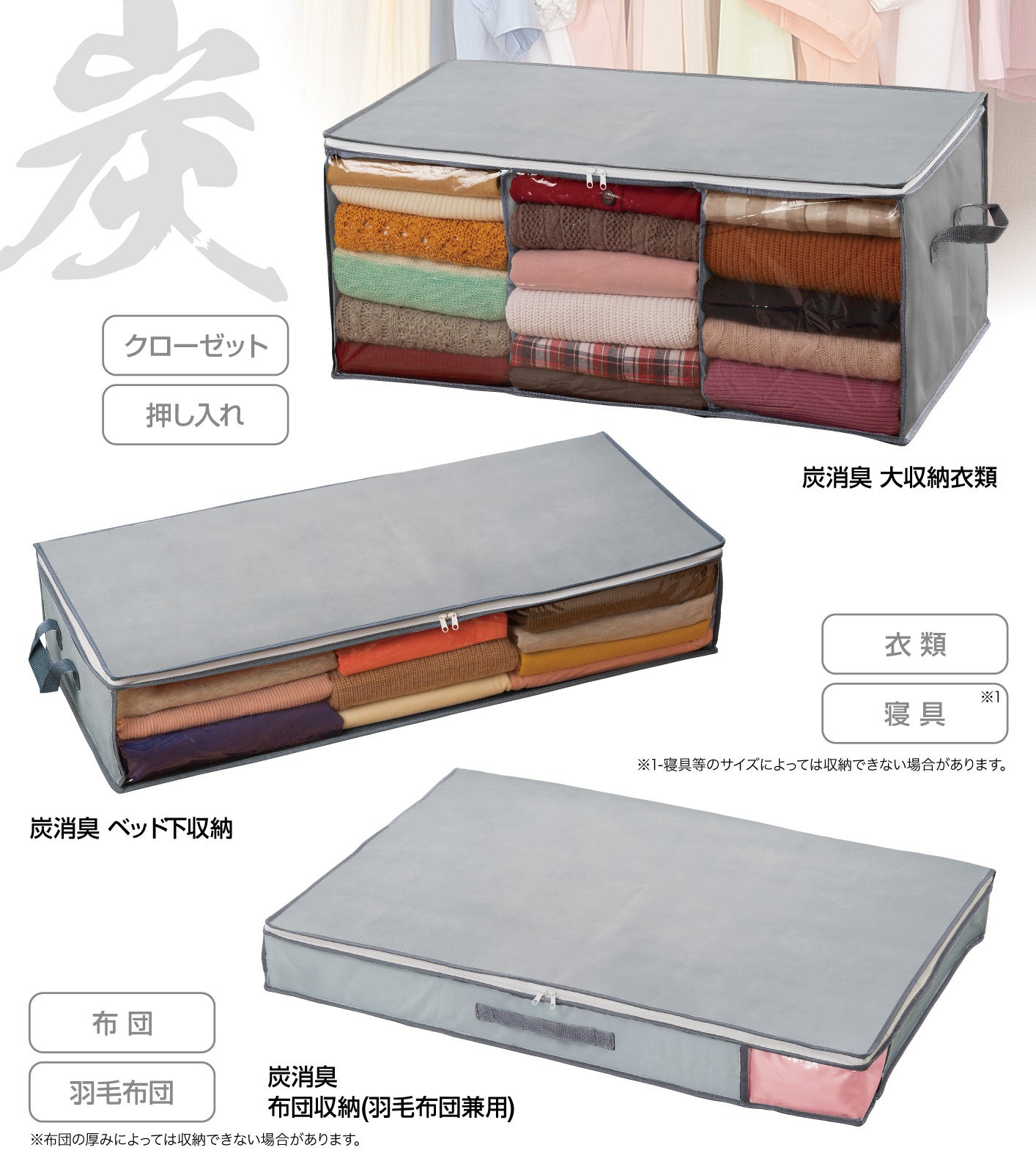 【大収納衣類・布団収納(羽毛布団兼用)・ベッド下収納の3つの炭消臭シリーズ】炭シートでニオイもスッキリ!衣類や寝具の整理整頓に!