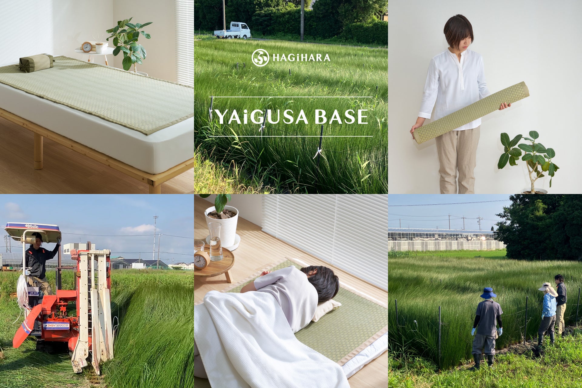 同社は1892年創業で花ござの製造販売を手がけてきましたが、国内でのい草栽培経験はありませんでした。国内い草農家が減少する中、栽培から織りまでを自社で担い課題を把握する目的で、2024年に焼津市で栽培を開始し、YAiGUSA BASE(約8反)で2025年に初収穫したい草を商品化しました。