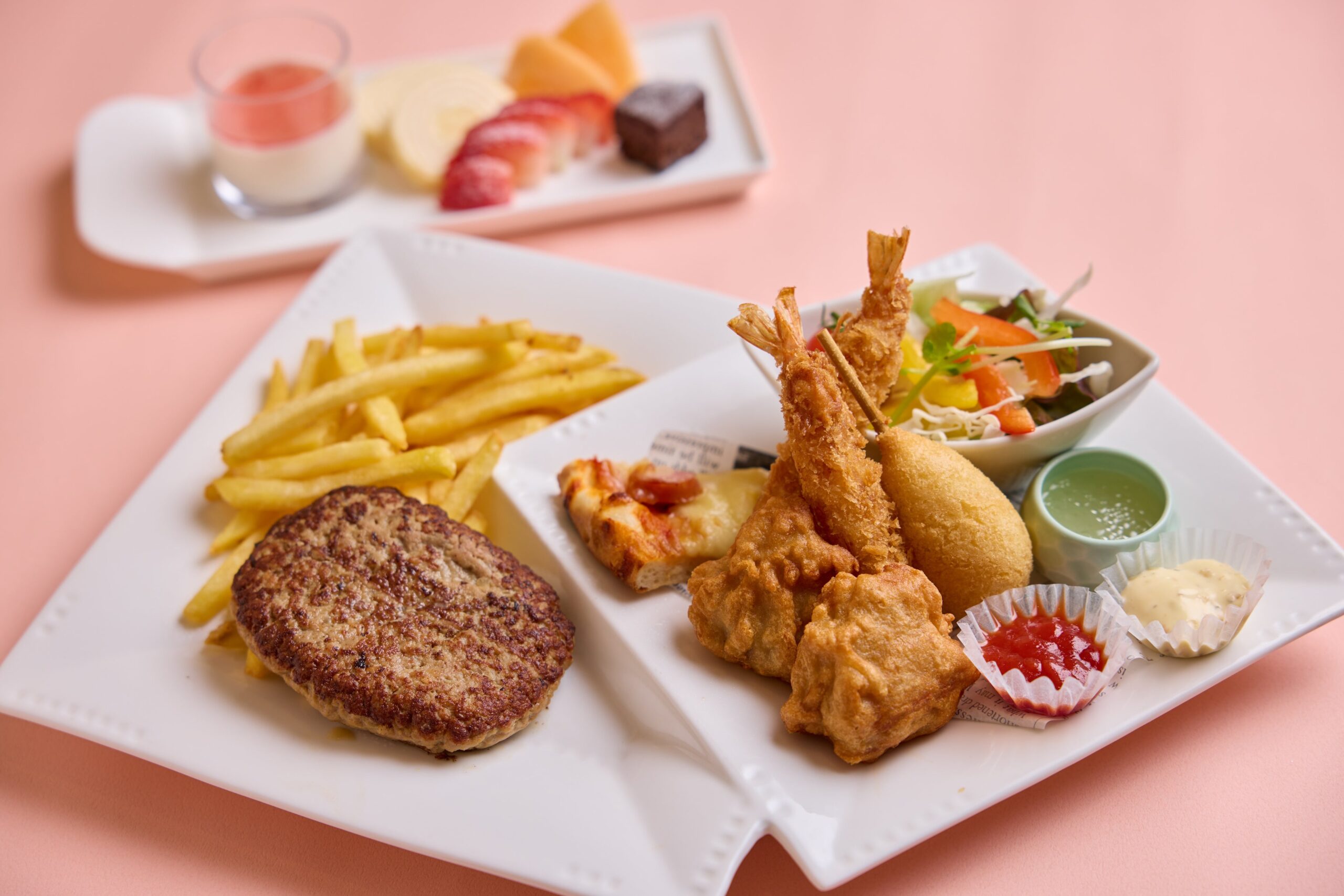 夕食は専用プレートに加え、バイキングメニューも利用できます。朝食はホテルお任せの「お子様メニュー」を提供し、家族で選択肢を確保しながら食事を進められる設計です。「桜房」はハーフバイキングの枠組みで、周囲や時間を気にせず食事をしたい人向けのプランとして位置付けられています。