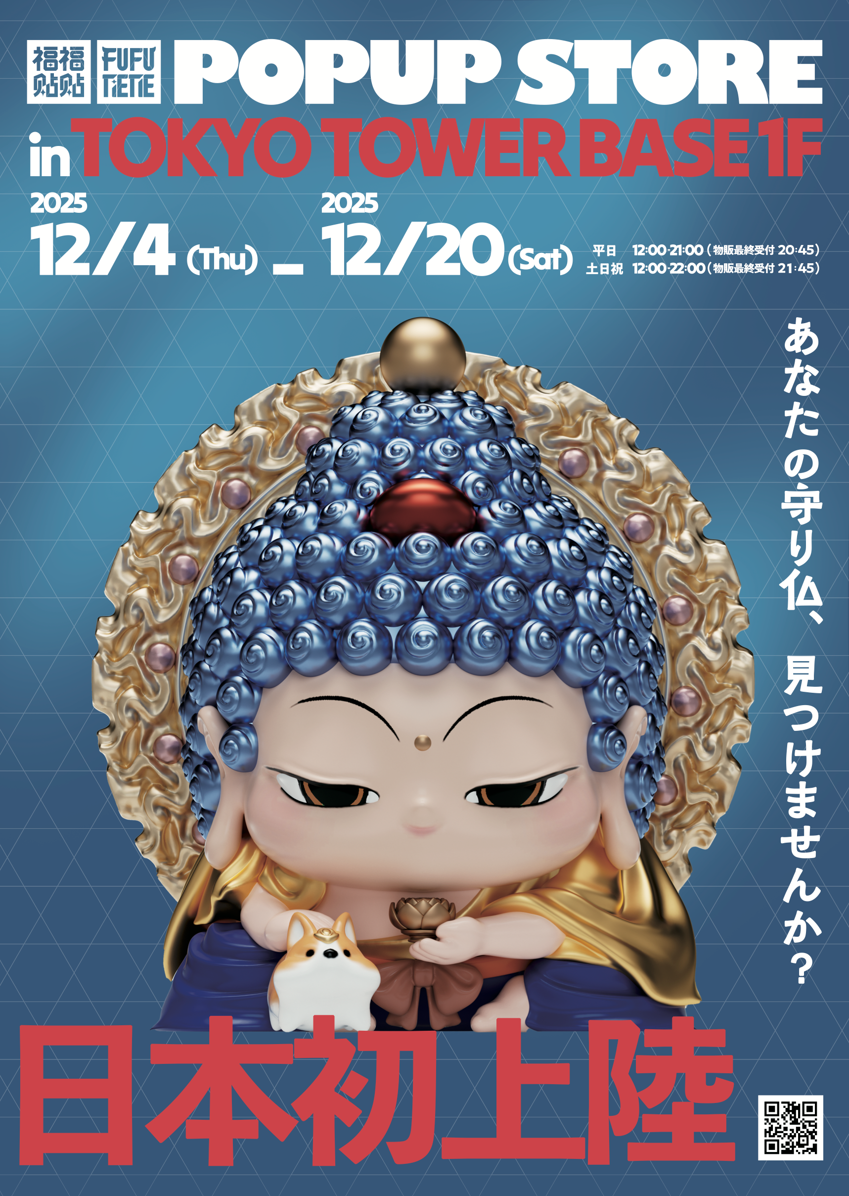 アートフィギュア「FUFUTIETIE(フゥフゥテテ)」が日本に初上陸します。期間は2025年12月4日〜20日の17日間、会場は東京タワーのTOKYO TOWER BASE 1Fです。営業時間は平日12:00〜21:00、土日祝12:00〜22:00。日本限定アイテムと体験型企画を用意し、4シリーズ(KOKOROBI、GOEN、OMUSUBI、KOMUSUBI)を中心に展開します。
