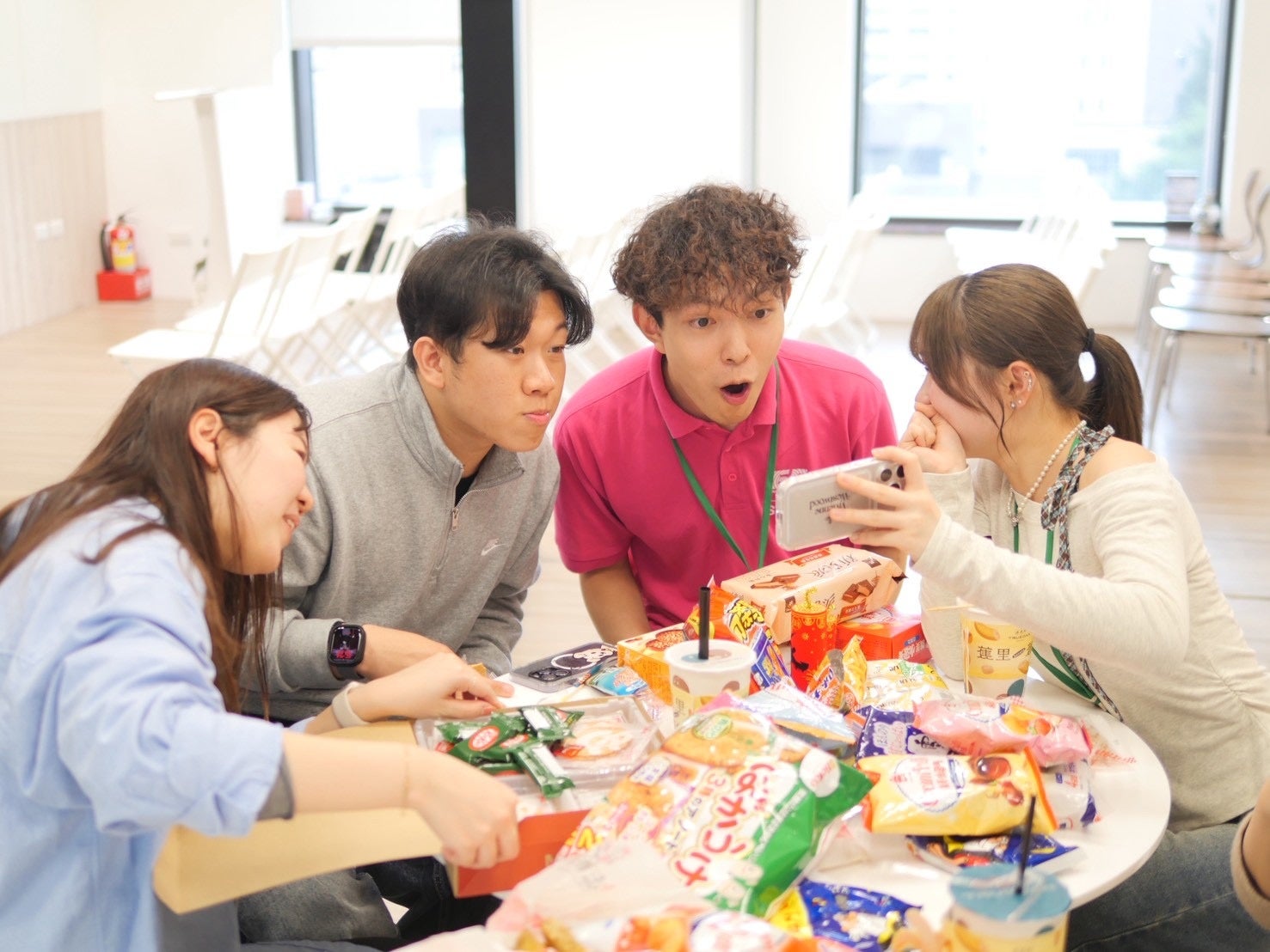 会場ではアイスブレイクの後、スナックや菓子を囲んだ文化紹介、テーマ別ディスカッションなどで半日交流しました。参加者は英語力テスト「EF SET」も受験し、受験者のうち高校生1名がC1、大学生1名がC2の結果でした(CEFR準拠の指標)。