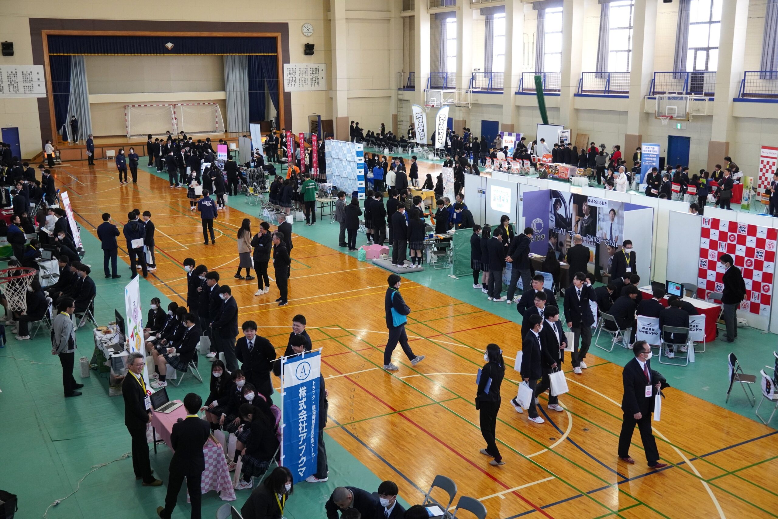 クサカ印刷所は2月12日、帝京安積高等学校(福島県郡山市)で福島県初の体験型合同企業説明会「COURSE EXPO」を開き、出展46社・団体と高校1年生約350人が参加しました。生徒アンケート(有効309人)では、体験ブースが「とても楽しかった・興味が湧いた」が約88%でした。