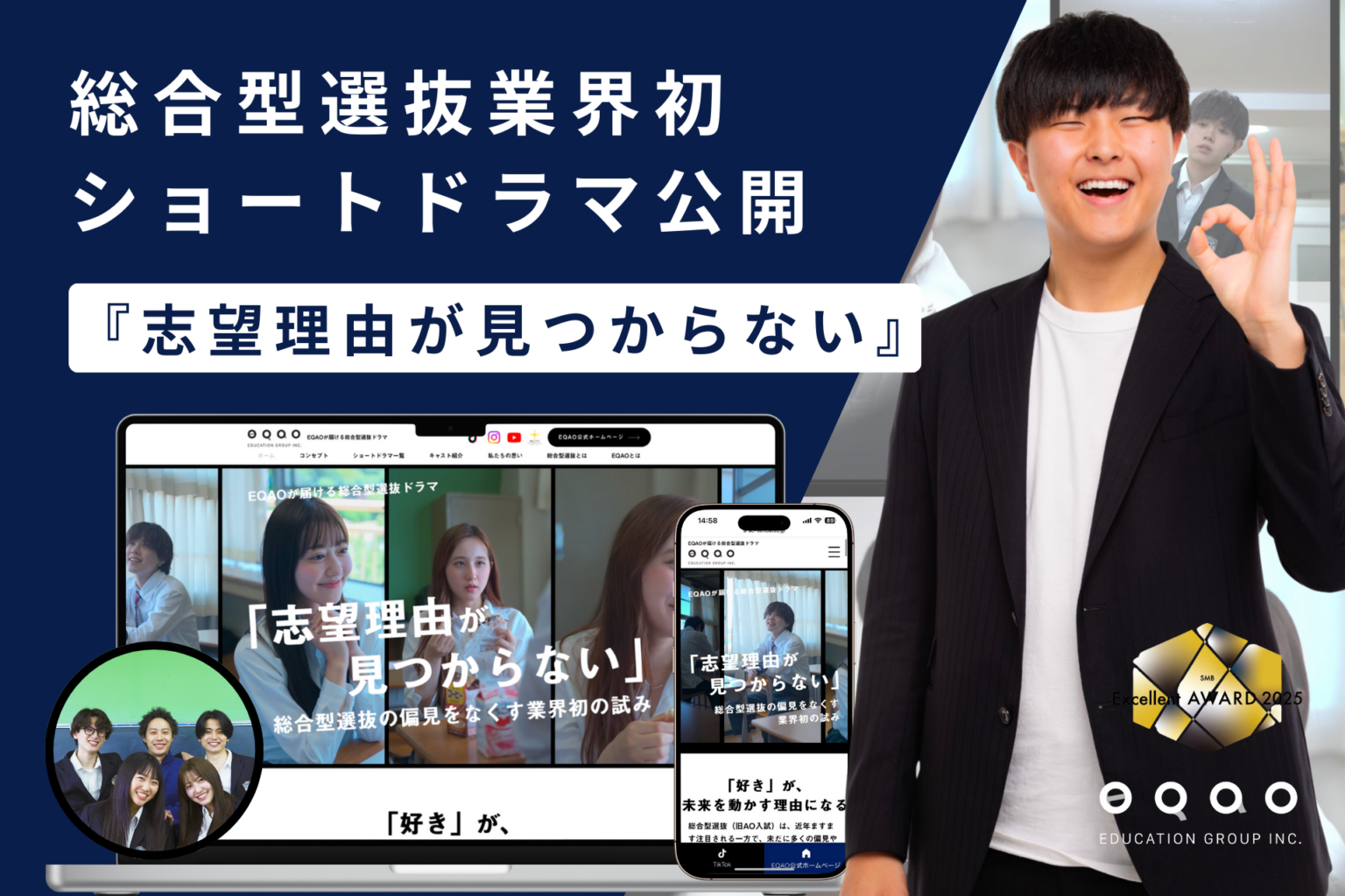 EQAO教育グループ(東京都港区)は2026年2月12日、総合型選抜・学校推薦型選抜をテーマにしたショートドラマ企画『志望理由が見つからない』を完全公開し、YouTubeやSNSで縦型動画として配信すると発表しました。全シリーズは2026年2月末までに公開予定です。