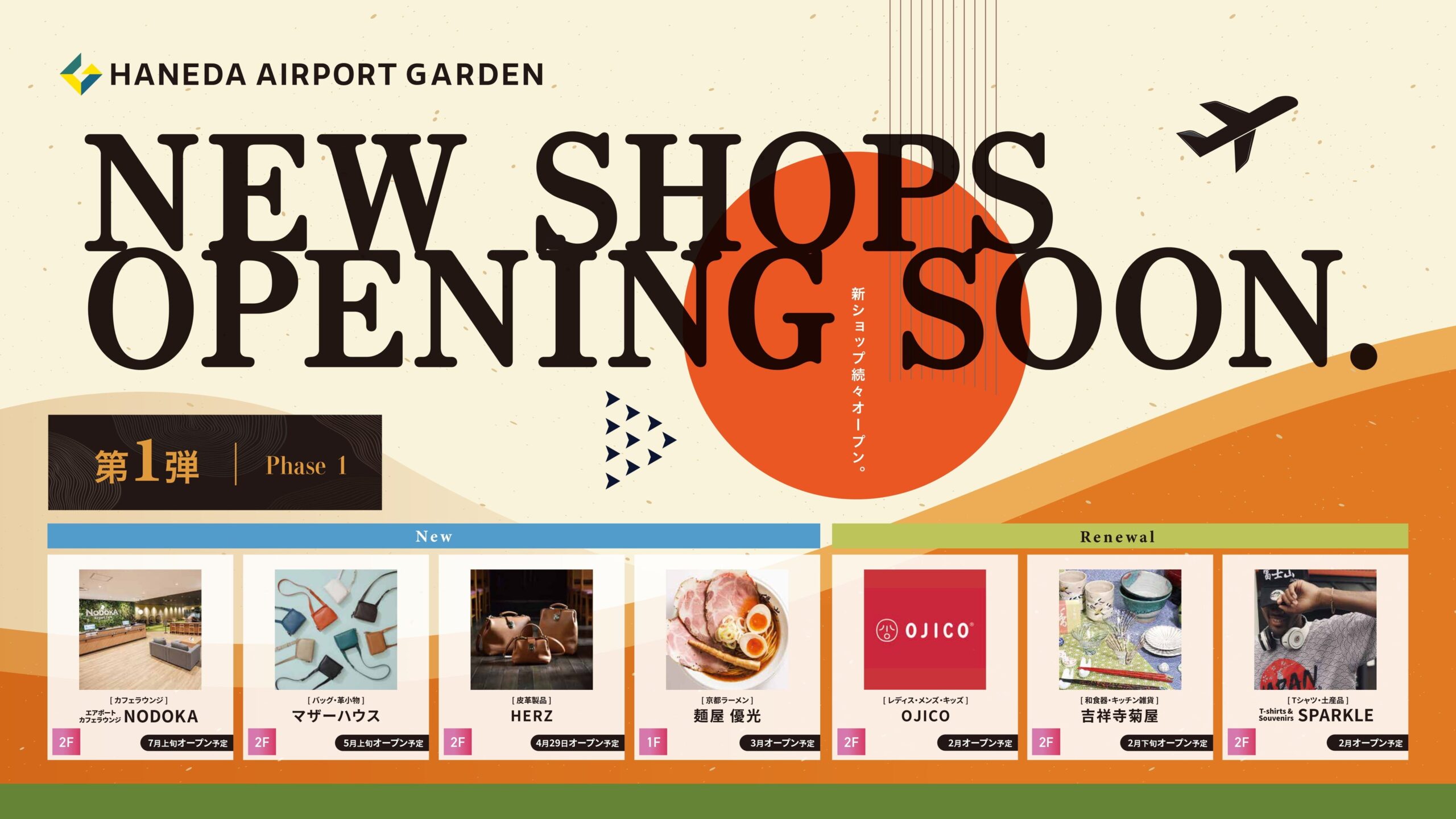 狙いは、空港利用者の動線やニーズの変化に合わせ、24時間機能する施設としての役割を強めることです。第1弾として新規4店舗の開業予定を示し、既存3店舗も移転・リニューアルオープンします。営業時間を24時間とする店舗も入り、深夜・早朝の利用を取り込みます。