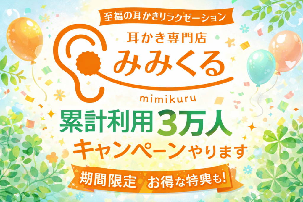 中国式耳かき専門店「耳かき専門店 みみくる」は、開業1年半で累計利用者数が30,000人を超えたとし、2026年2月24日からの5日間に40分コースを2,980円で提供するキャンペーンを始めます。続く第二弾は3月2日から5日間で、60分コースを5,480円にします。