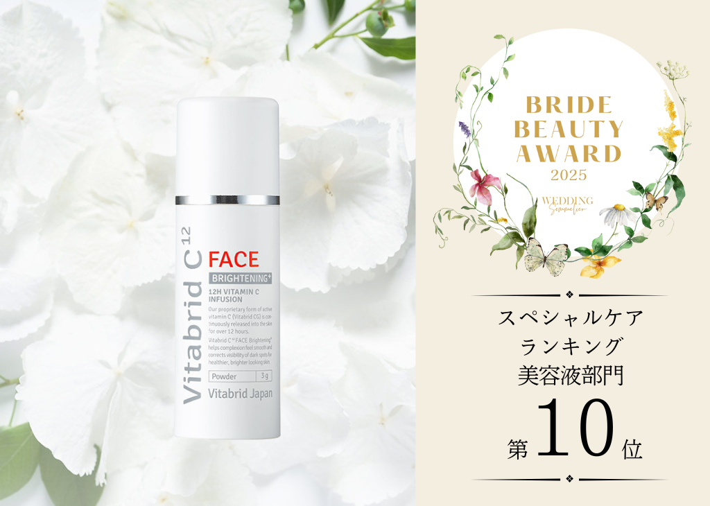 結婚準備中の花嫁・卒花嫁300人の投票で作成された「花嫁美容アワード2025」のスペシャルケア部門で、ビタブリッドジャパン(東京都港区)のスキンケア「ビタブリッドCフェイス ブライトニング プラス」がTOP10に入った。調査期間は2024年10月30日〜12月5日で、ウェディングソムリエのアンバサダー/メンバーズが回答した。