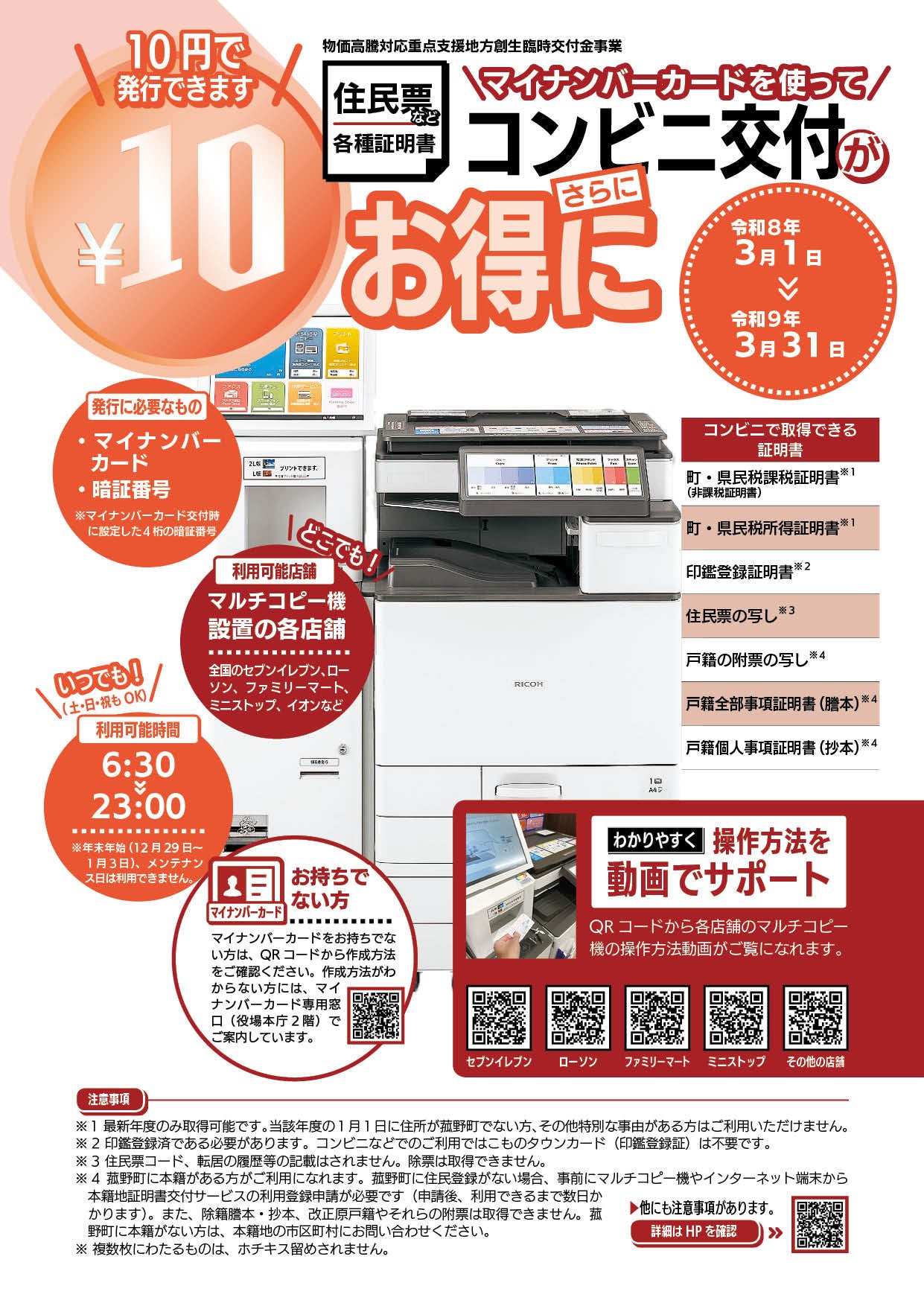 期間: 令和8年3月1日から令和9年3月31日まで(コンビニ交付の発行手数料1通10円)