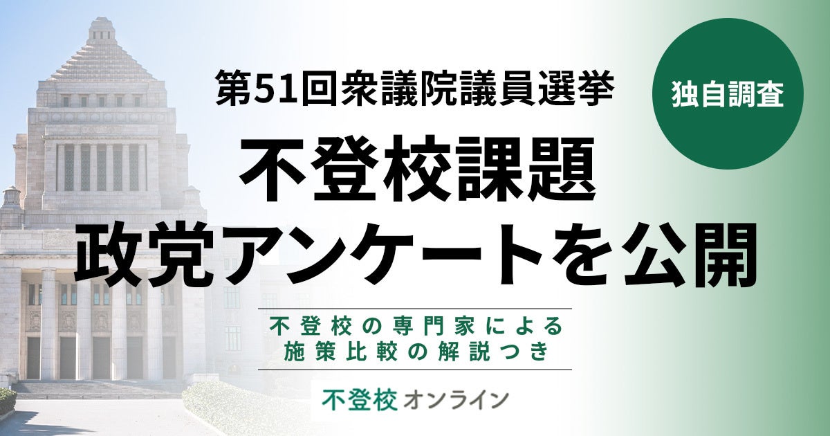 調査は「『不登校オンライン』衆議院議員選挙政党アンケート」として、1月28日から2月2日正午まで実施。メールや問い合わせフォームで各政党に送付し、メールまたはフォームで回答を回収した。期限までに回答がなかった政党は記事に掲載しない運用としている。