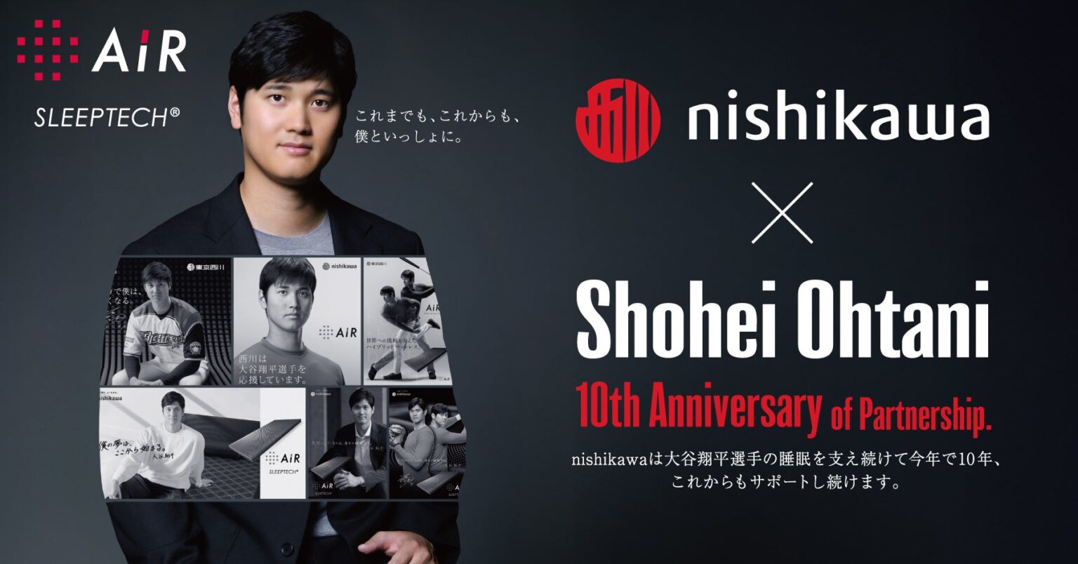 西川(東京都中央区)は2026年2月4日、大谷翔平選手との睡眠コンディショニングサポート契約を本年度も継続し、契約が10年目に入ったと明らかにしました。契約10周年に合わせ、新ビジュアルと新CM「大谷翔平10年目の[エアー]を語る」篇(15秒/30秒)を公開します。