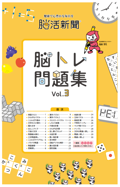 西日本新聞社は2025年12月22日、連載企画「脳活新聞」から生まれた「脳トレ問題集Vol.3」を販売開始しました。タブロイド判・全32ページで、5部セット2000円、10部3500円、100部2万円(いずれも税込)です。