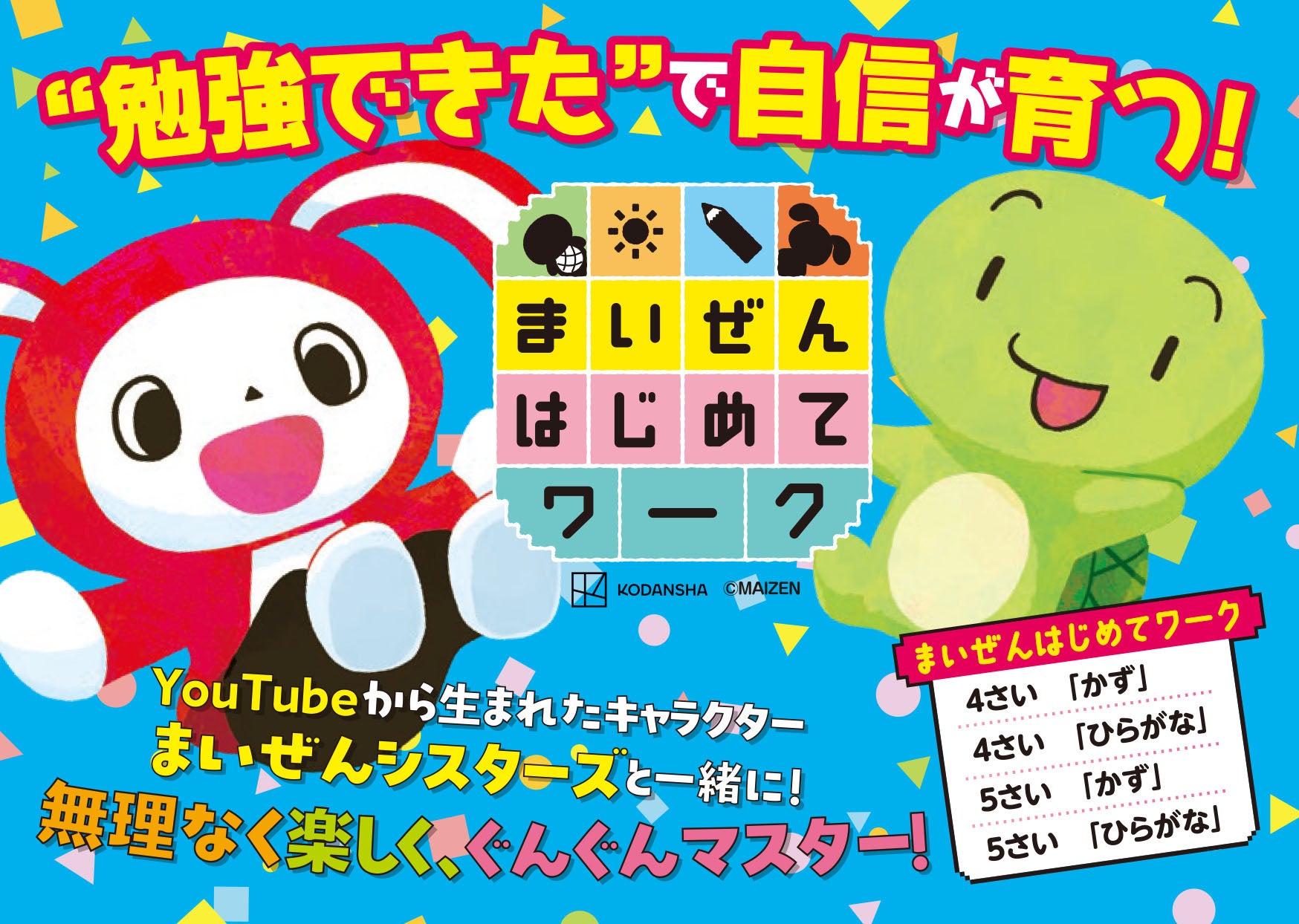 講談社は2026年2月9日、ゲーム実況で知られる「まいぜんシスターズ」を題材にした未就学児向け新シリーズ『まいぜんはじめてワーク』を発売します。ラインアップは「ひらがな」4さい・5さい、「かず」4さい・5さいの計4冊で、各1100円(税込)、A4判48ページです。