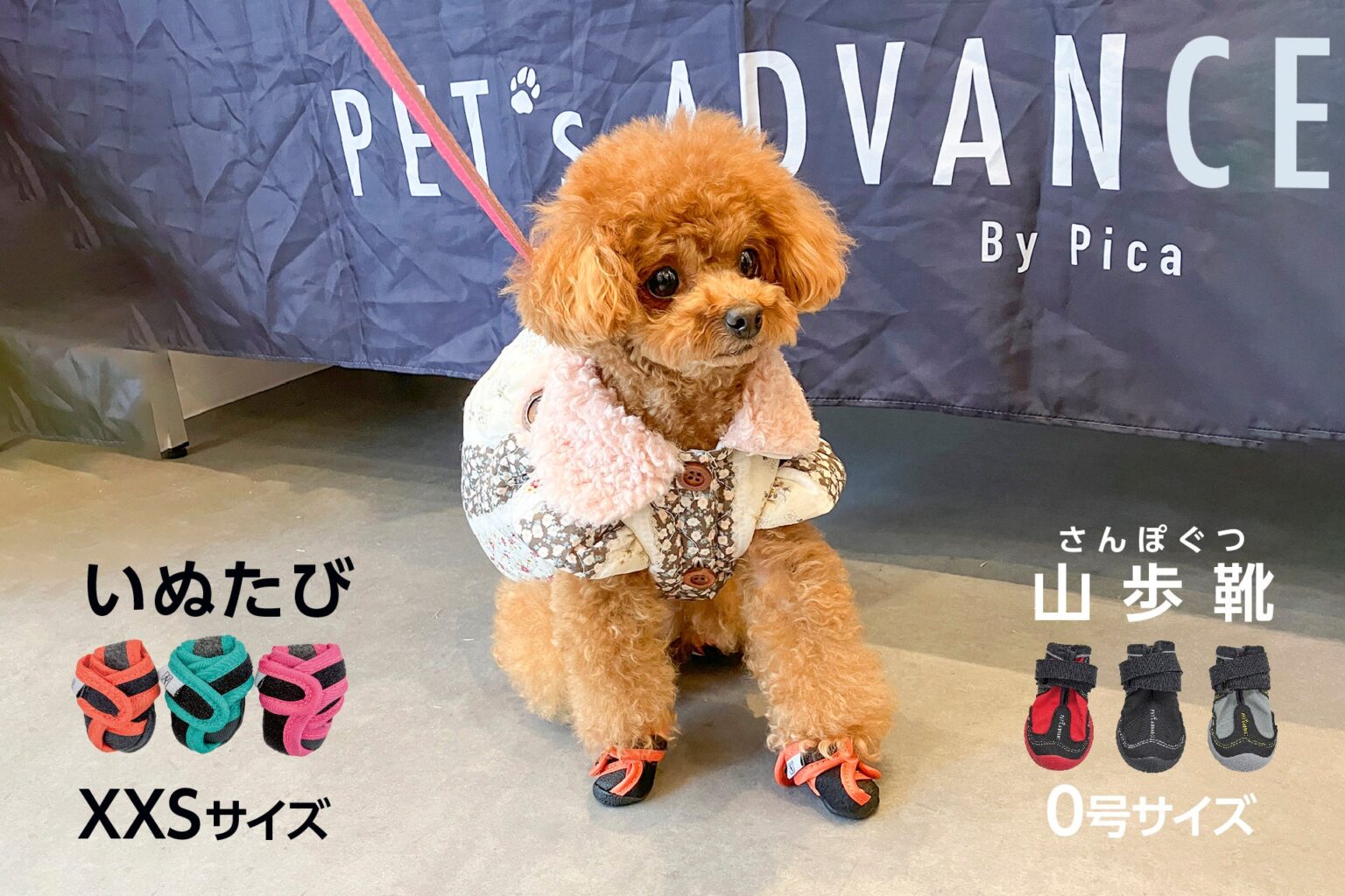 ピカコーポレイション(大阪府東大阪市)は2026年4月2日、犬用靴「いぬたび」にXXSサイズ、「山歩靴(さんぽぐつ)」に0号サイズ(XXXS)を追加し、インターペット東京2026(東京ビッグサイト東ホールE3、ブースG030)で販売を始めます。価格は「いぬたび」XXSが7,920円(税込)、「山歩靴」0号が5,940円(税込)です。